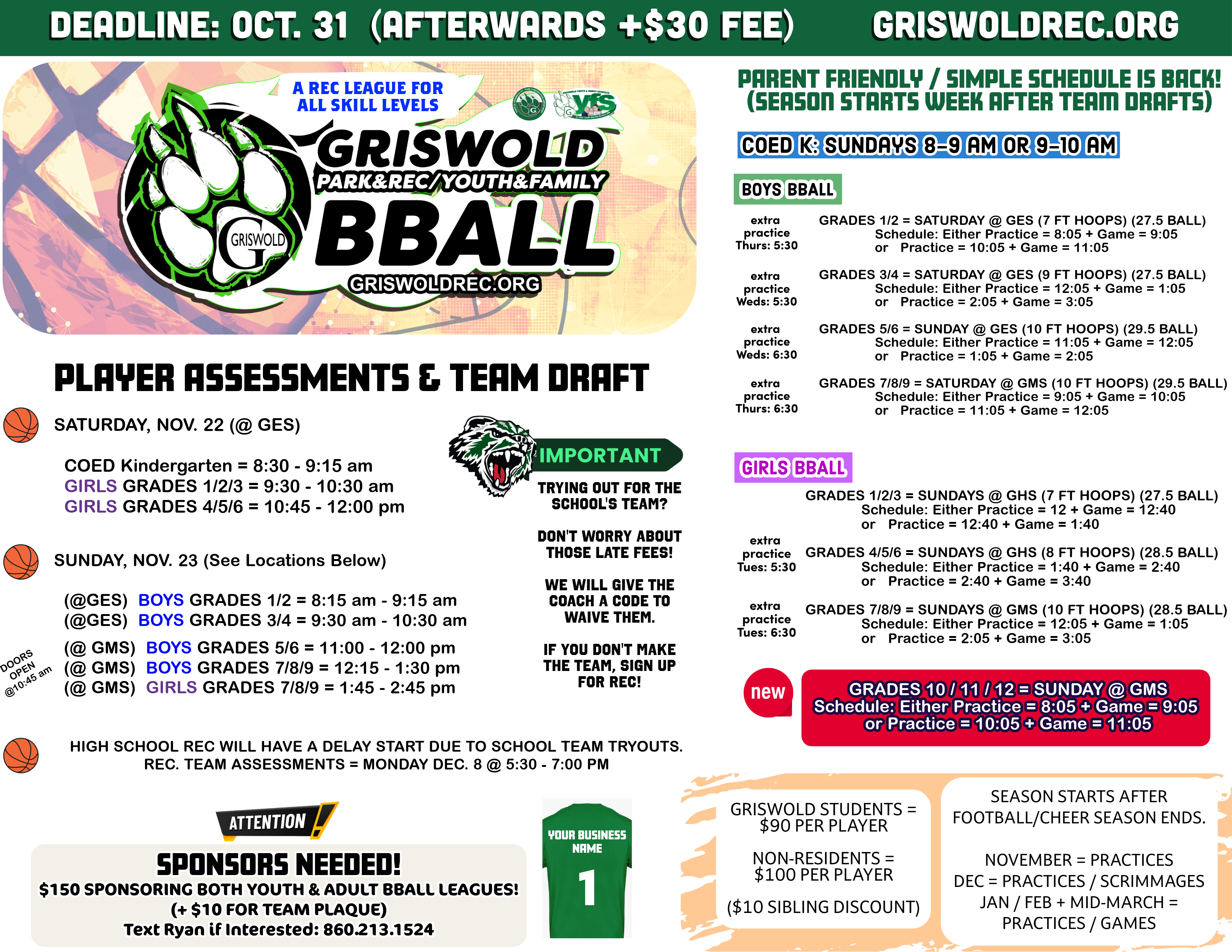 Girls Rec Bball - Grades 7,8,9 (Saturdays)